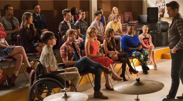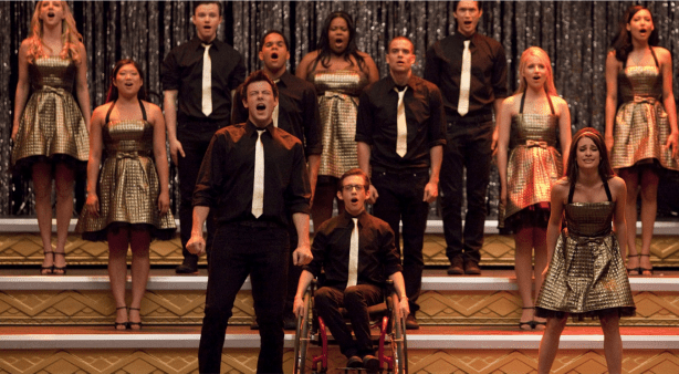 From 19 May 2009 until 20 March 2015, FOX aired six seasons of musical comedy and teen drama television series Glee. Created by Ryan Murphy, Brad Fulchuk and Ian Brennan, the show follows the antics of the New Directions, a fictional high school ‘glee’ club or show choir in Lima, Ohio. The New Directions sing and dance their way through the show choir competition circuit, performing a mix of Broadway show tunes and pop music chart hits while dealing with personal problems to do with bullying, sexual orientation, discrimination and relationship issues. Songs covered in the show were released through the iTunes Store during the week of broadcast, and a series of Glee albums have been released by Columbia Records. The series’ merchandise also includes DVD and Blu-ray releases, an iPad application, and karaoke games for the Wii. There were live concert tours by the show’s cast; a concert film based on the 2011 tour, Glee: The 3D Concert Movie, and a reality television series, The Glee Project, with participants competing for a role on the fictional show. Academic work on Glee has predominantly focussed on two areas. Firstly there has been much discussion of the series’ handling of contemporary social issues as well as its progressive representations of gender, race, disability and queer politics [1]. Secondly, scholars have tended to focus on the production and distribution structures that have enabled Glee’s phenomenal commercial success, and the activities of its huge teenage fan base on social media and through fan fiction [2]. There is as yet little discussion of the series’ unique genre-blending structures and its reinterpretation of the popular music and musical theatre canon with a focus on performance.