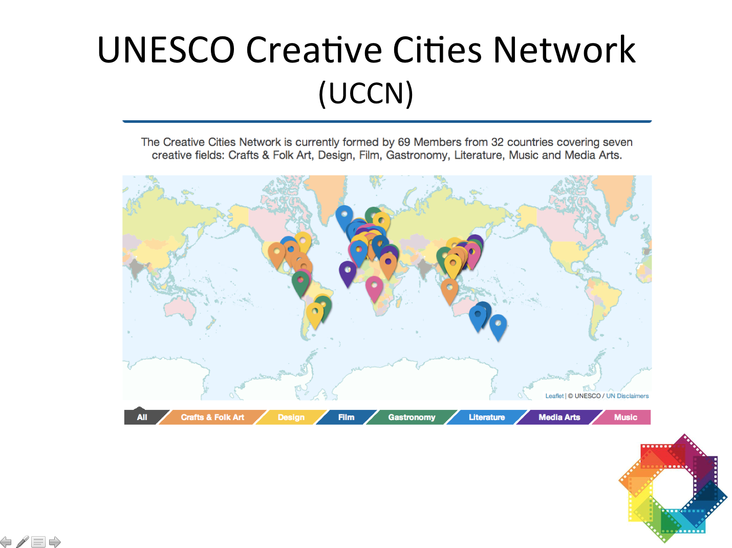 I would just like to begin with a disclaimer. I have only recently submitted by PhD and am just embarking on my next research project, which I hope will have something to do with the UNESCO Creative Cities Network (UCCN), specifically in regards to the UCCN cities of film. This seminar was an opportunity for me to test the feasibility of my ideas and pick the brains of my colleagues. For those of you who were not able to make it, I would love it if you got in touch with any further comments or suggestions via email!